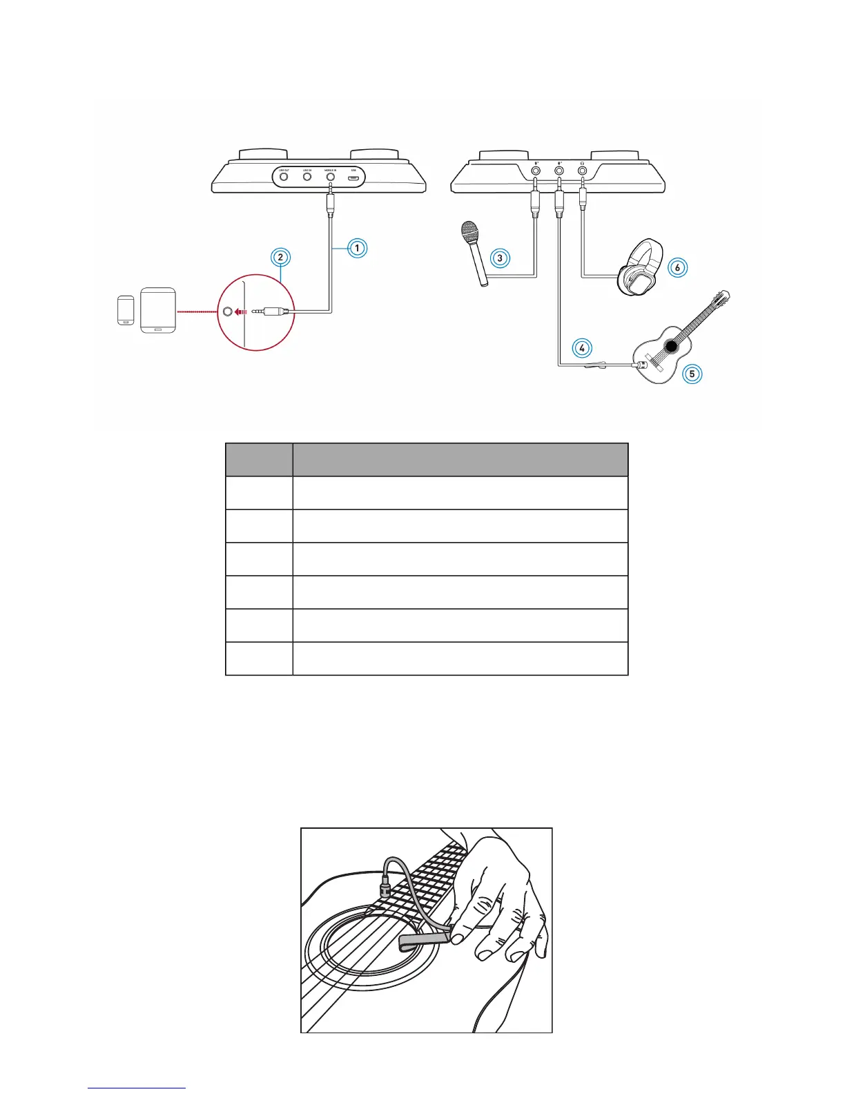 1. Mount the clip microphone on the rim of the guitar's sound hole.