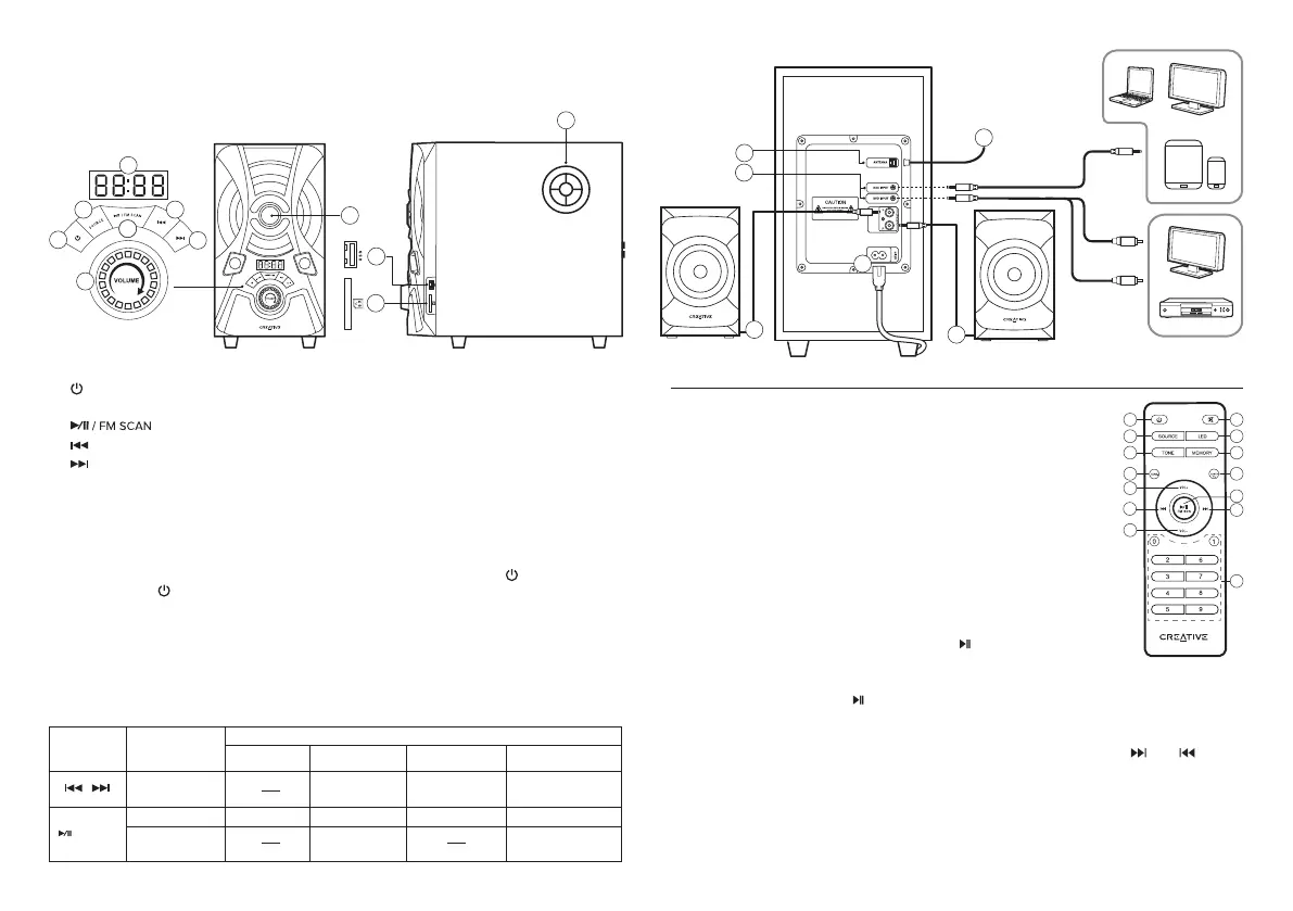 “Ub” stands for USB; “Sd” stands for SD Card input; “F and 87.5” stands for FM radio mode.)