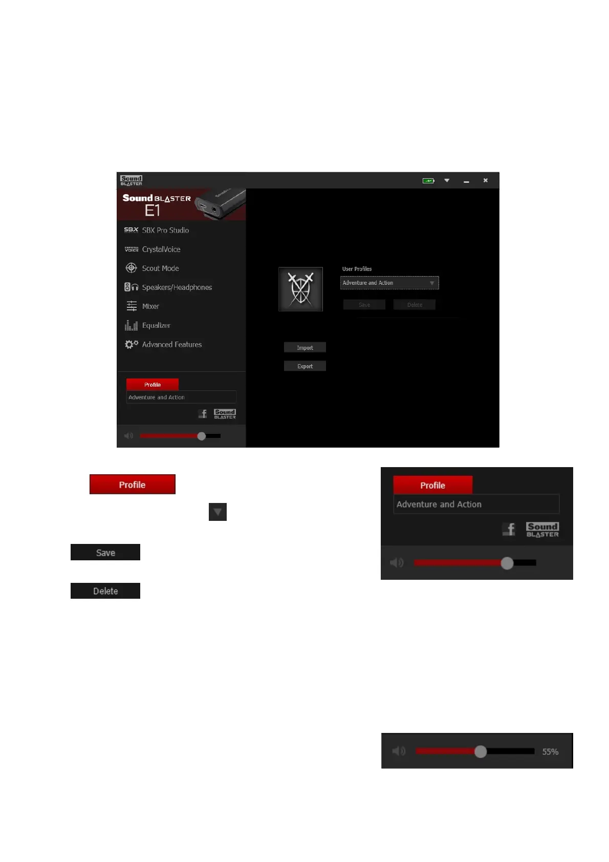 the various features of your Sound Blaster E1. The examples and screenshots below uses Windows as