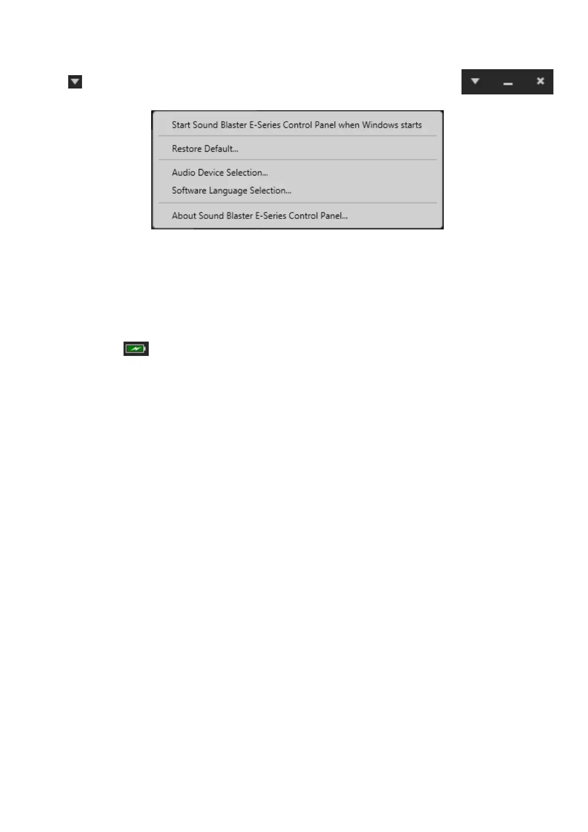 l Select whether the Sound Blaster E-Series Control Panel is activated when Windows starts.