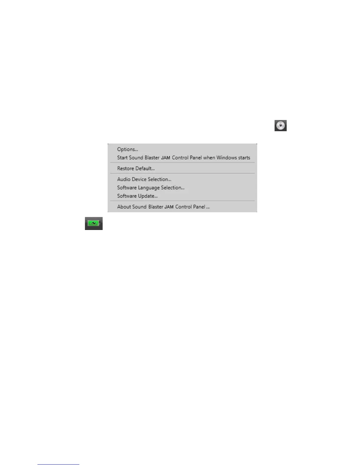 The battery icon indicates the battery status of the Sound Blaster JAM.