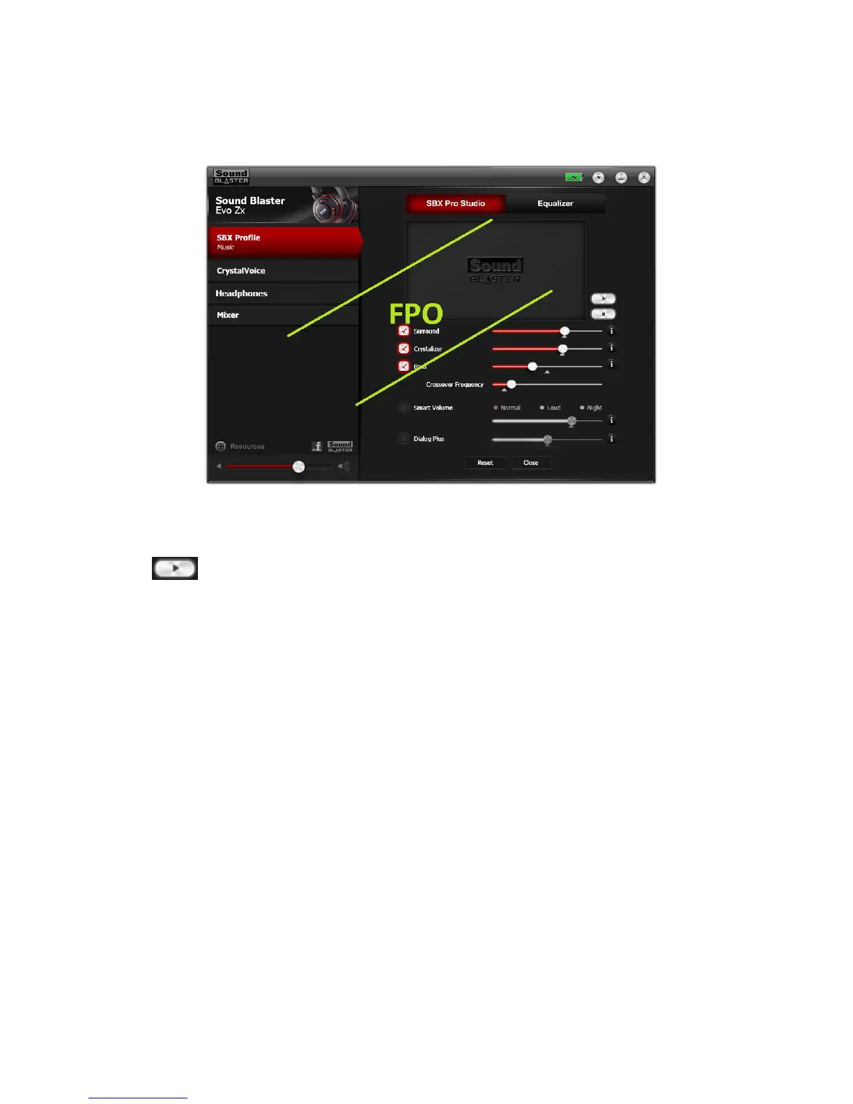1. Click the power button to toggle ON SBX Pro Studio.