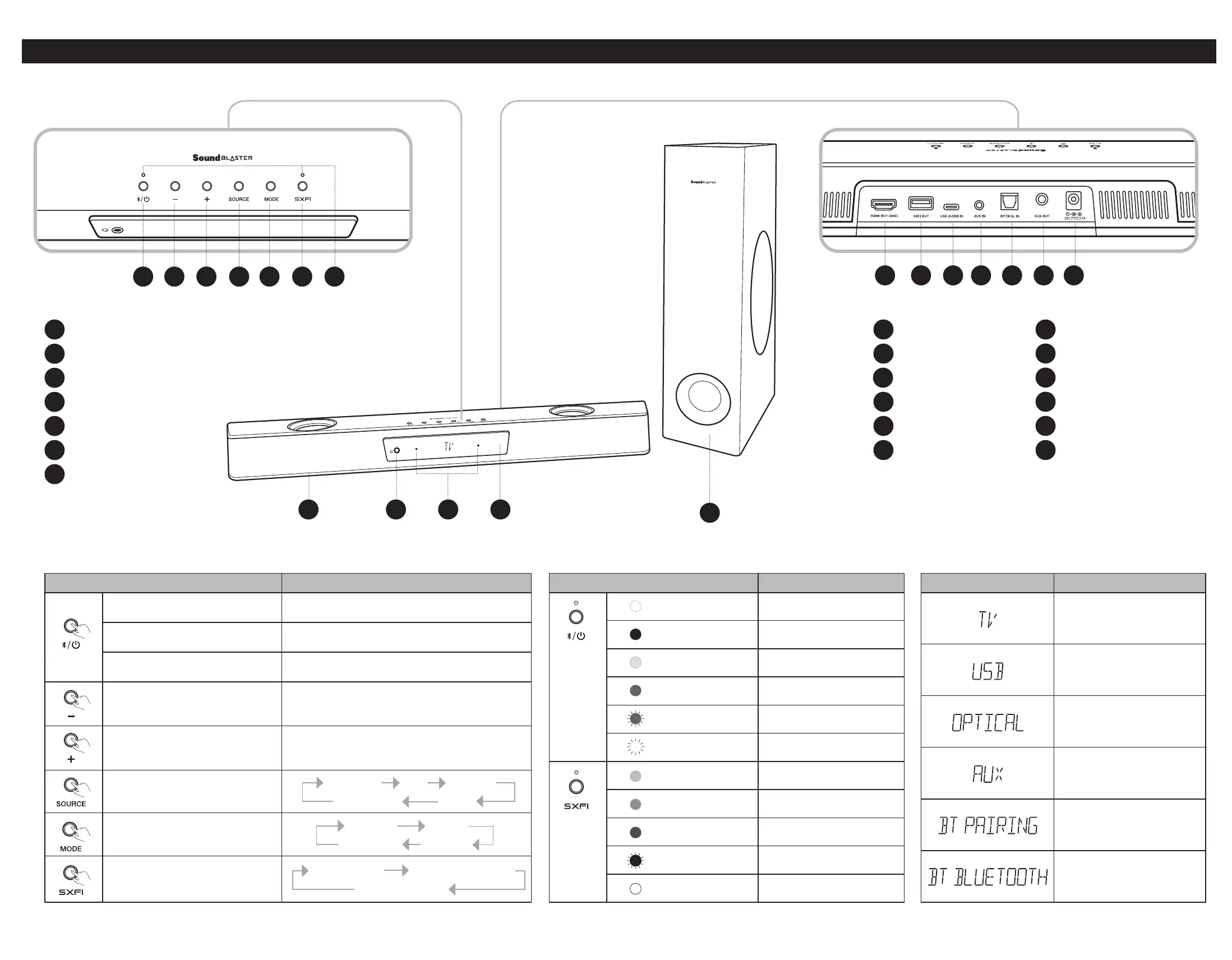 x1 – HDMI ARC > USB > OPTINEN > AUX > BLUETOOTH