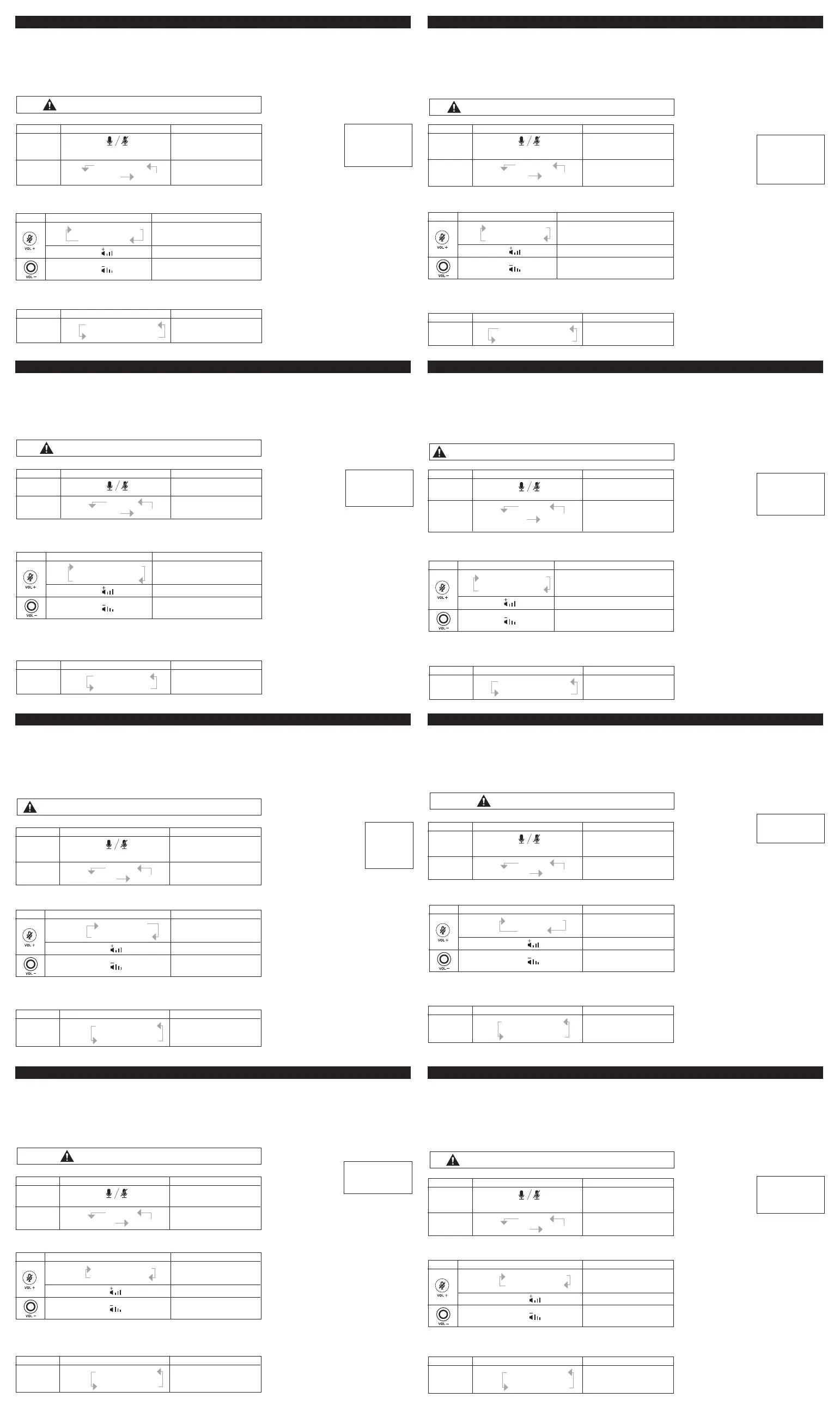 音量控制。按住麦克风静音/取消静音按钮可在两个功能之间循环切换。按如下所示的按钮进行音量
