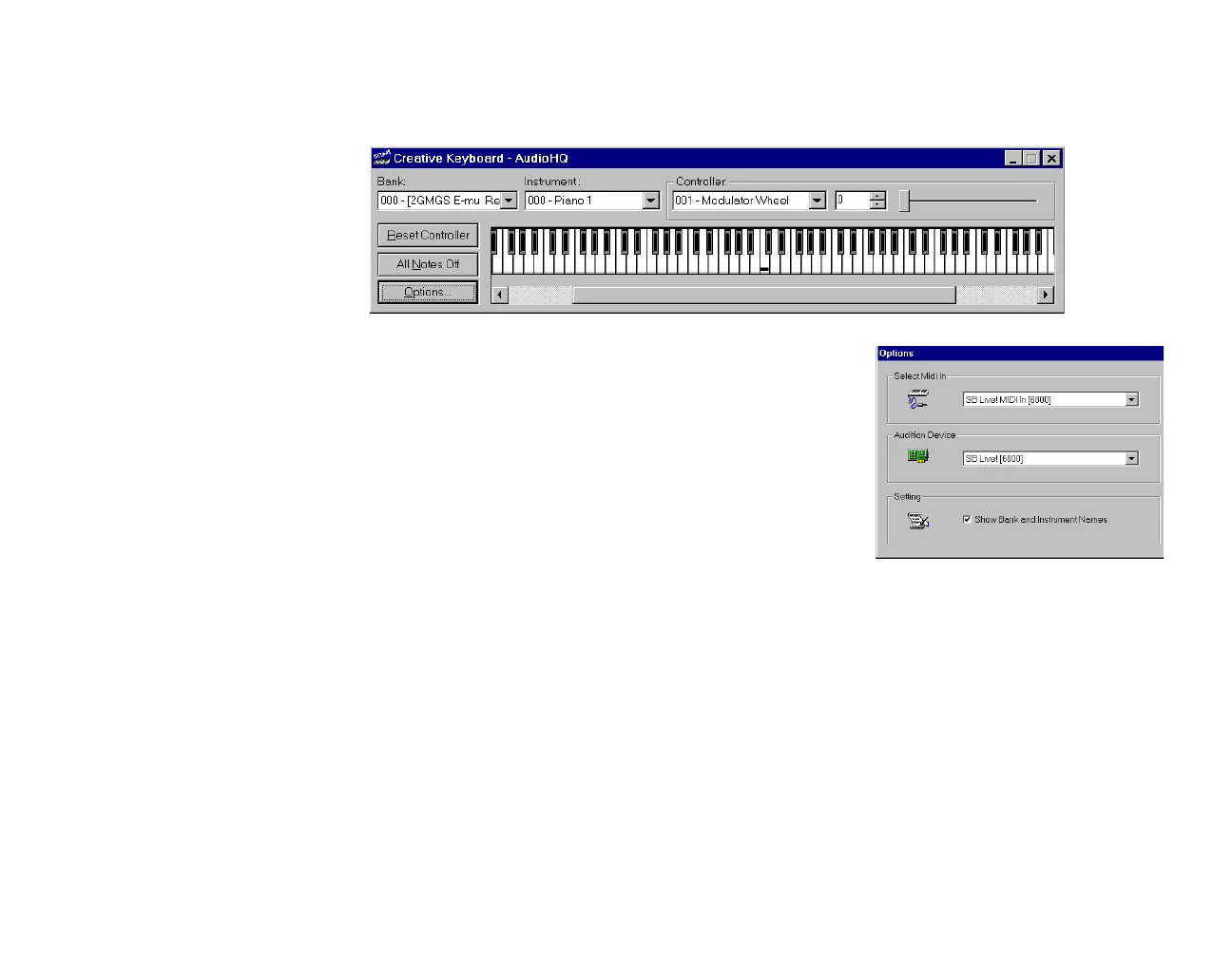 1. In Creative Keyboard, click the bank and the instrument you want.