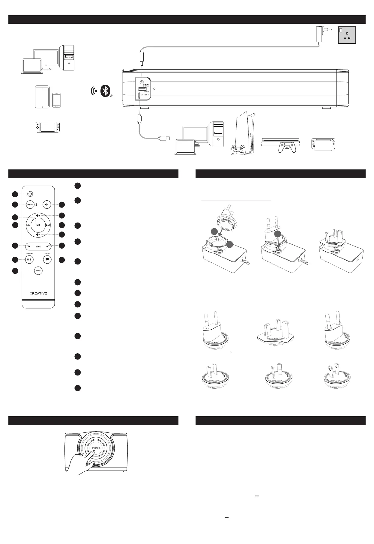 Creative Stage SE features a power adapter with interchangeable AC plugs, suitable for