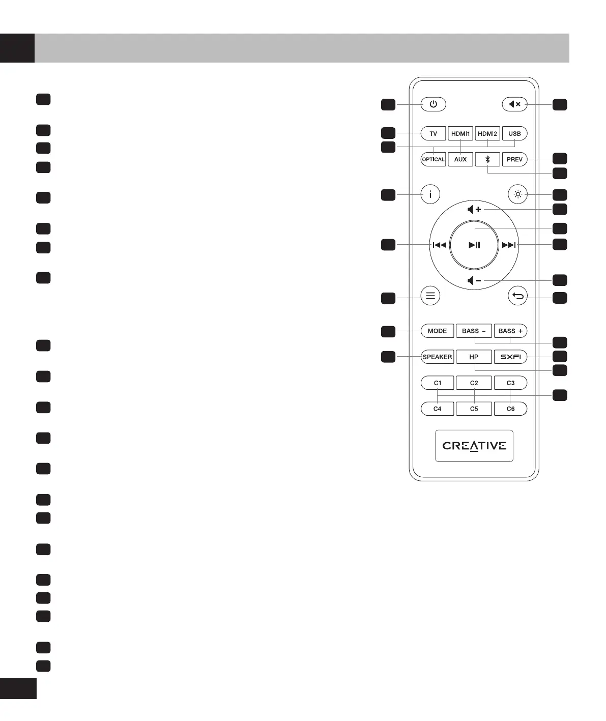 Bass – / + Button: Press once to adjust subwoofer’s bass level