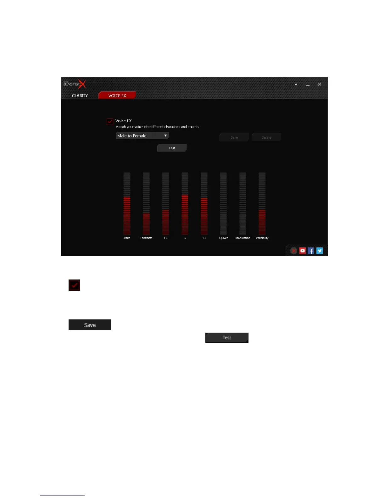 Voice FX setting by dragging the sliders up or down to the desired level.