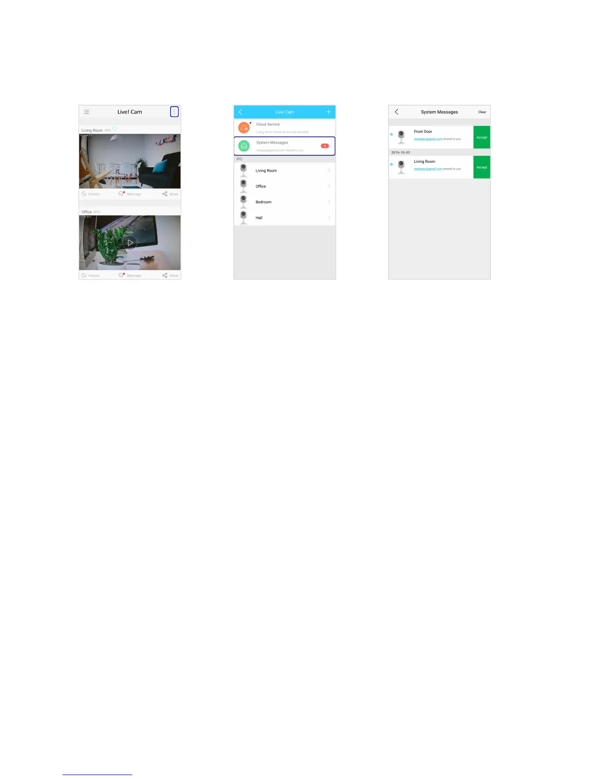 When someone shares their camera with you, you will see the invitation in System Messages.