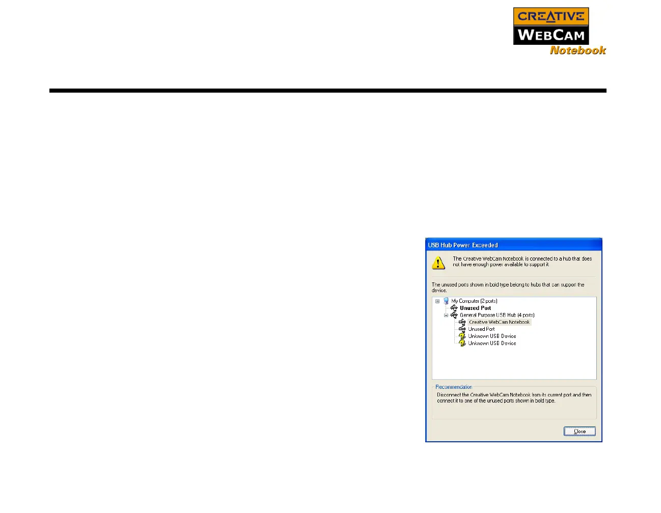 ❑ The camera is not properly connected. To resolve this problem, ensure that the camera’s USB