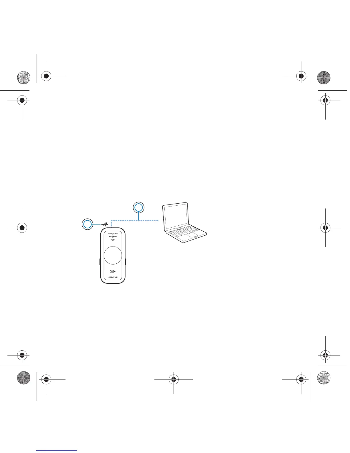 Xmod とコンピュータ、イヤフォン、またはスピーカーとを接続し、X-Fi