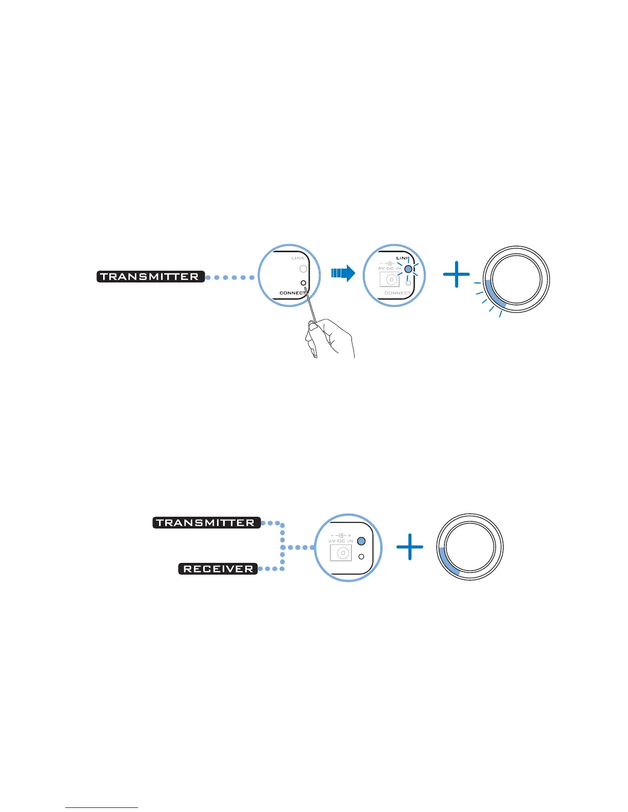 your transmitter. The transmitter’s Link LED and Volume LED ring flash.