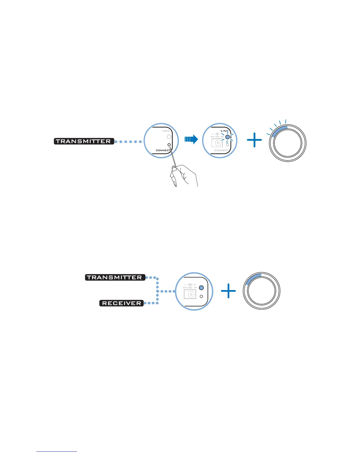 transmitter and receiver are paired successfully, the Link LED and Volume