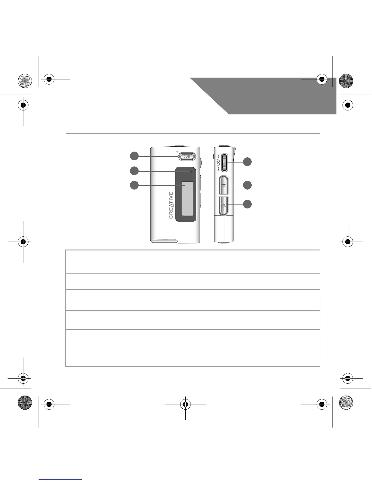 Tryk og hold for at tænde/slukke afspilleren.