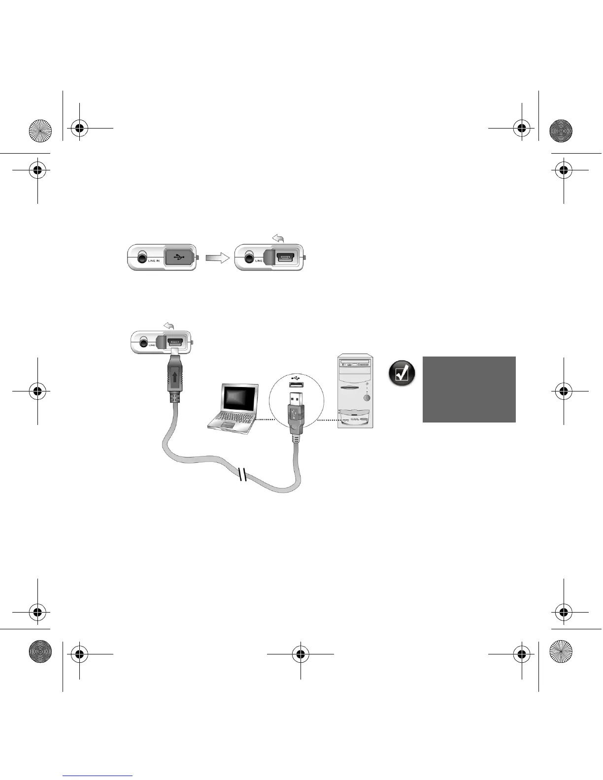 2. Slut afspilleren til computerens USB-port med det medfølgende USB-kabel.