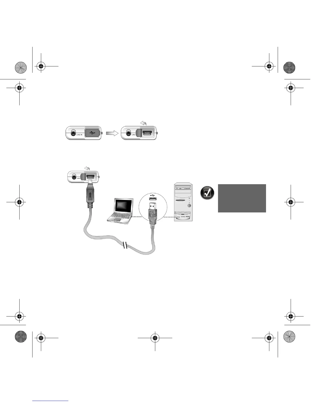 2. Connect your player to your computer’s USB port using the supplied USB cable.