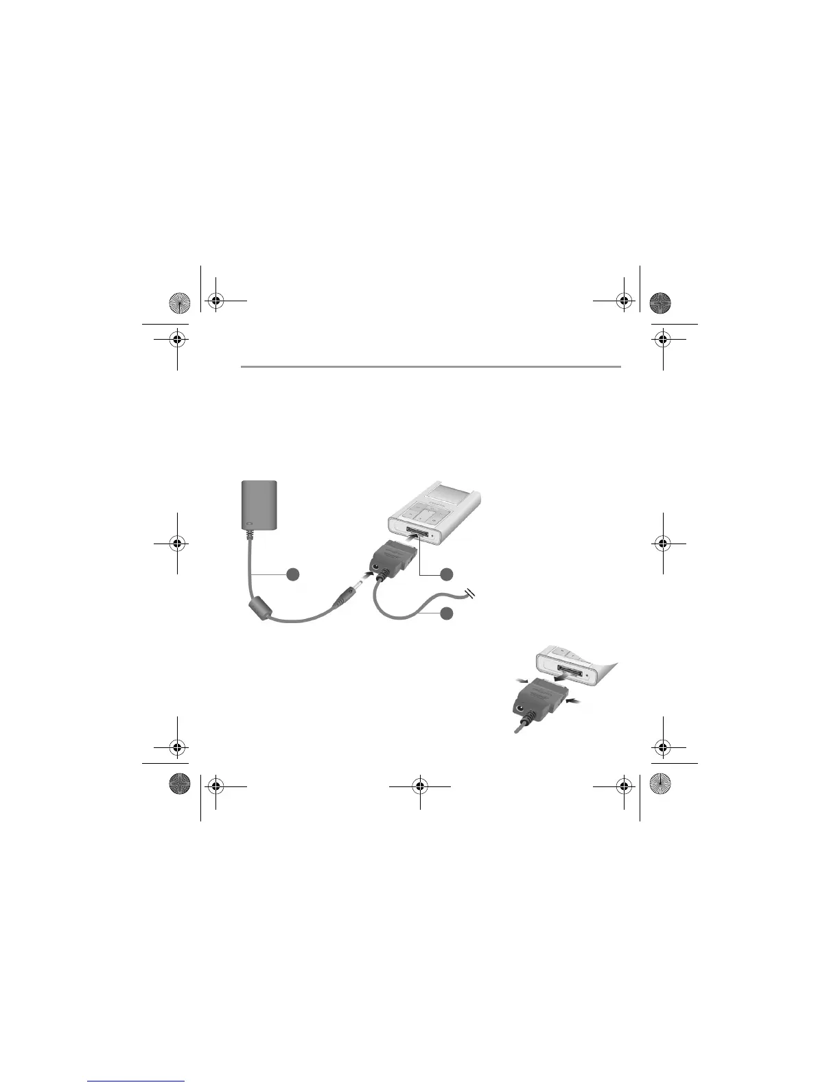batteri, kobler du strømadapteren til USB-synkroniseringskabelen og en stikkontakt. Koble