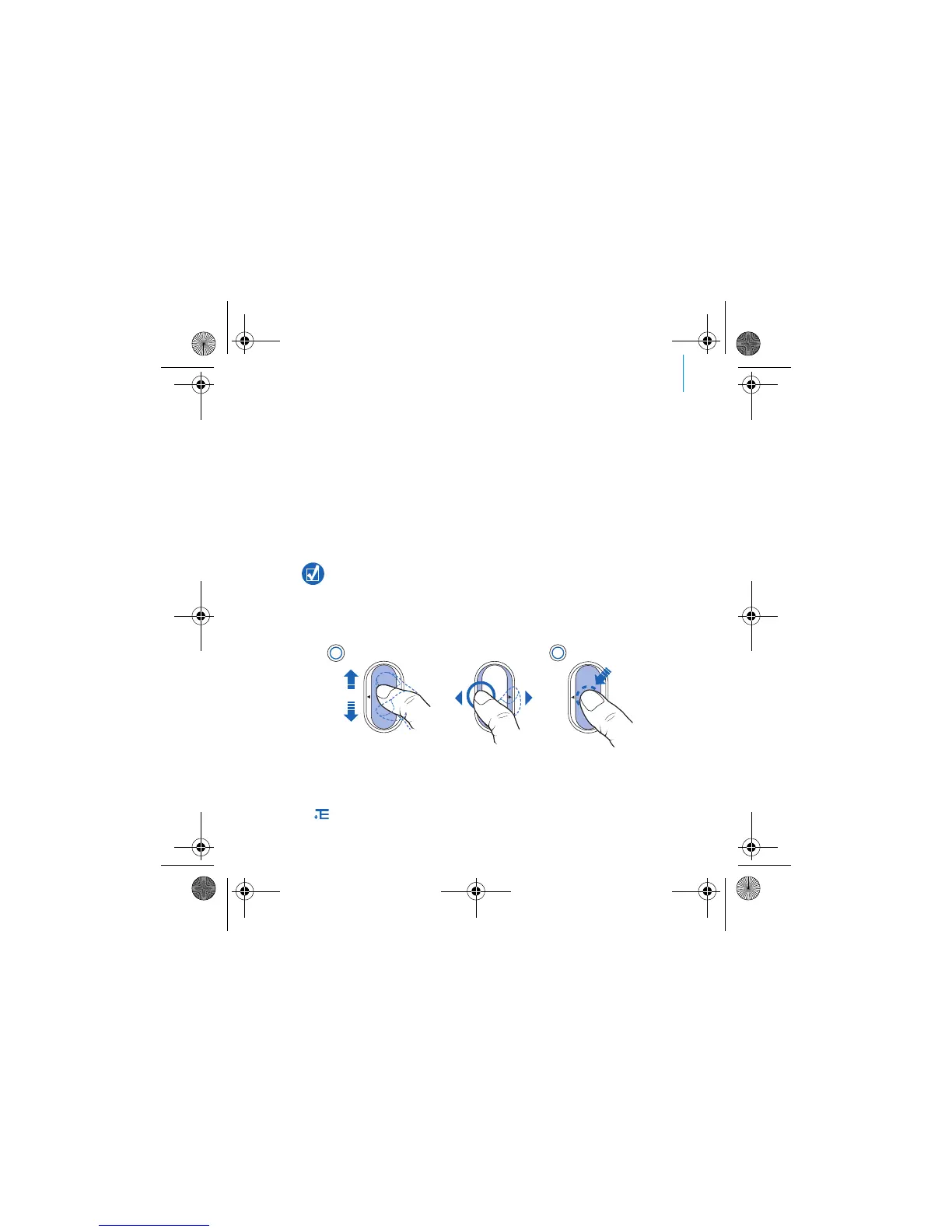 1 Beweeg uw duim op en neer over het Verticale touch-pad om verticaal door