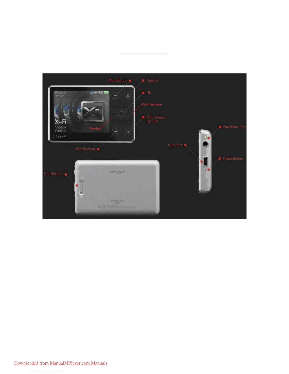Creative Zen X-Fi - Device Layout; Device Controls; Ports and Connections