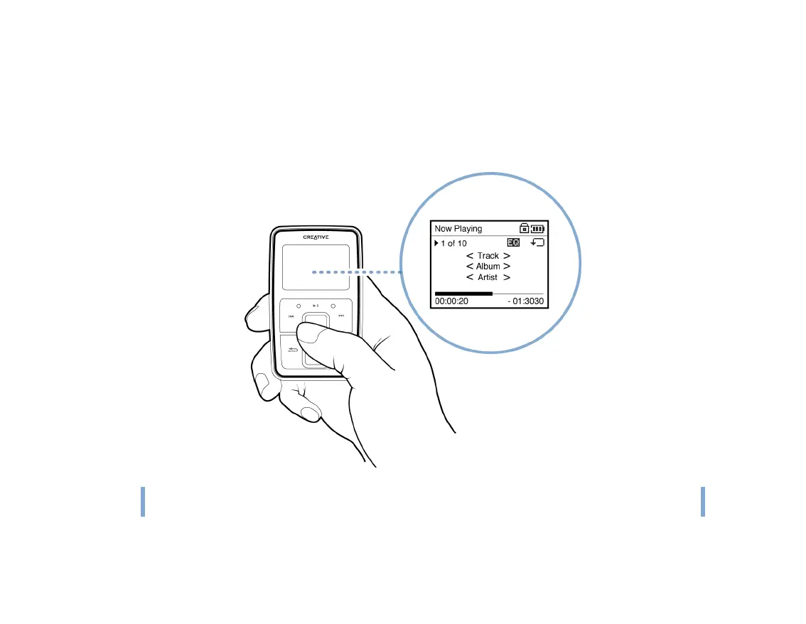 adjust the volume. Status icons at the top right corner of the LCD indicate Zen Micro’s