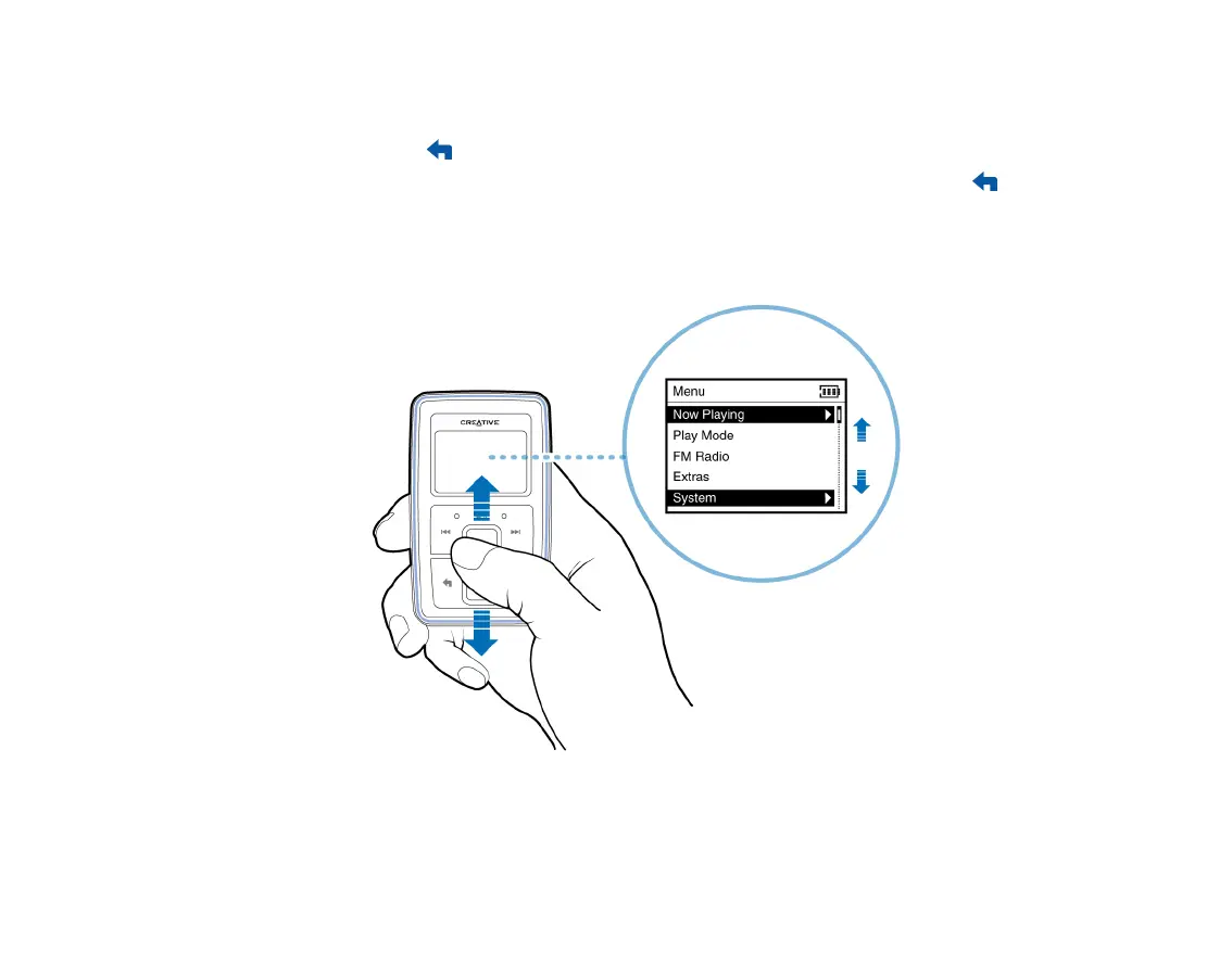 Press the Menu/Back button to view Zen’s main menu. Move your thumb up and down