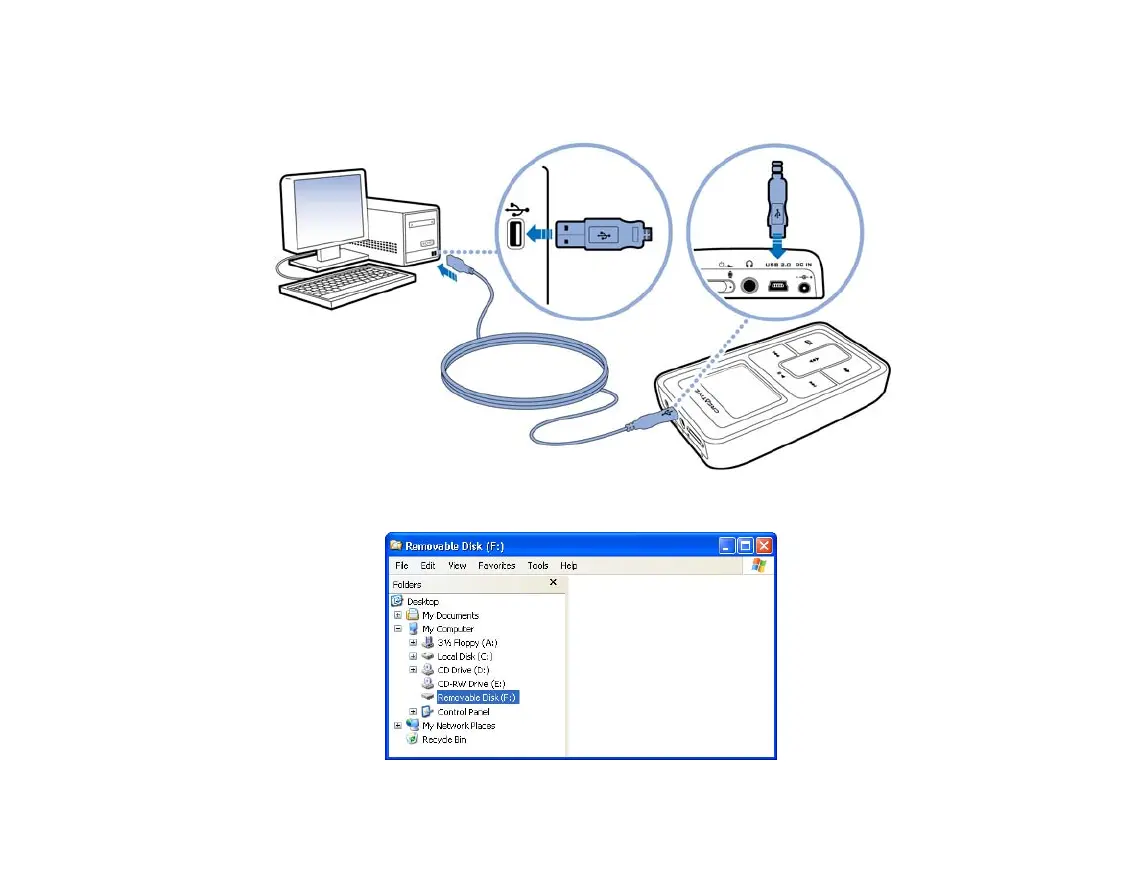 Zen appears as a Removable Disk under My Computer in Windows Explorer.