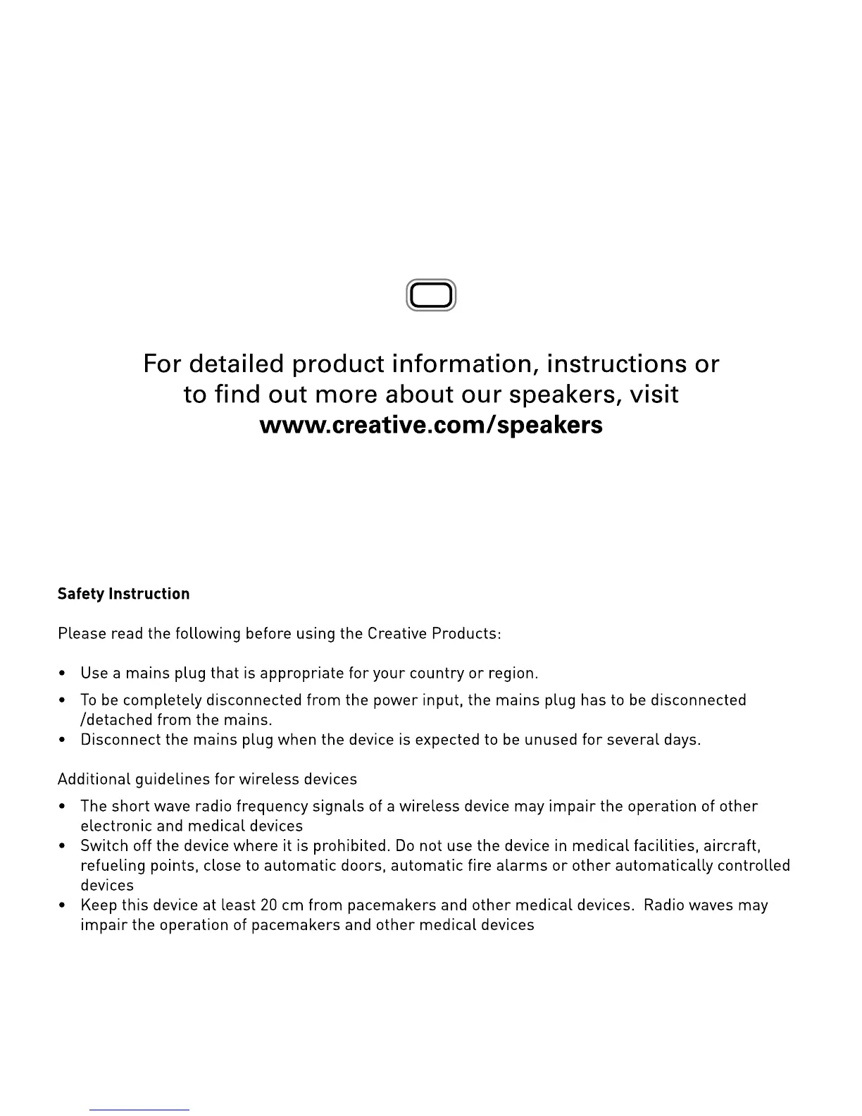 Creative ZiiSound D3x - Safety, Specifications, and Compatibility; Safety Instructions