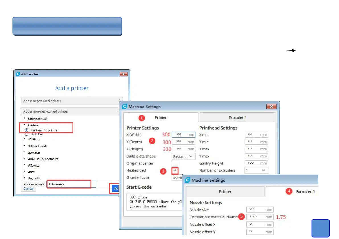 1. Open the SD card,find the CURA(or download online), After installing the software:Add a