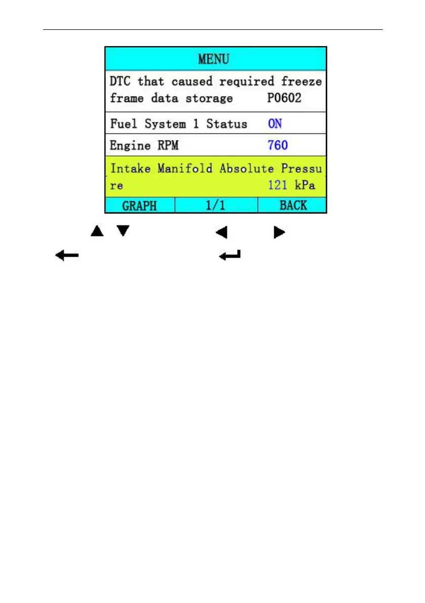Press [ ][ ] to select, [ ] and [ ] to Page, Press