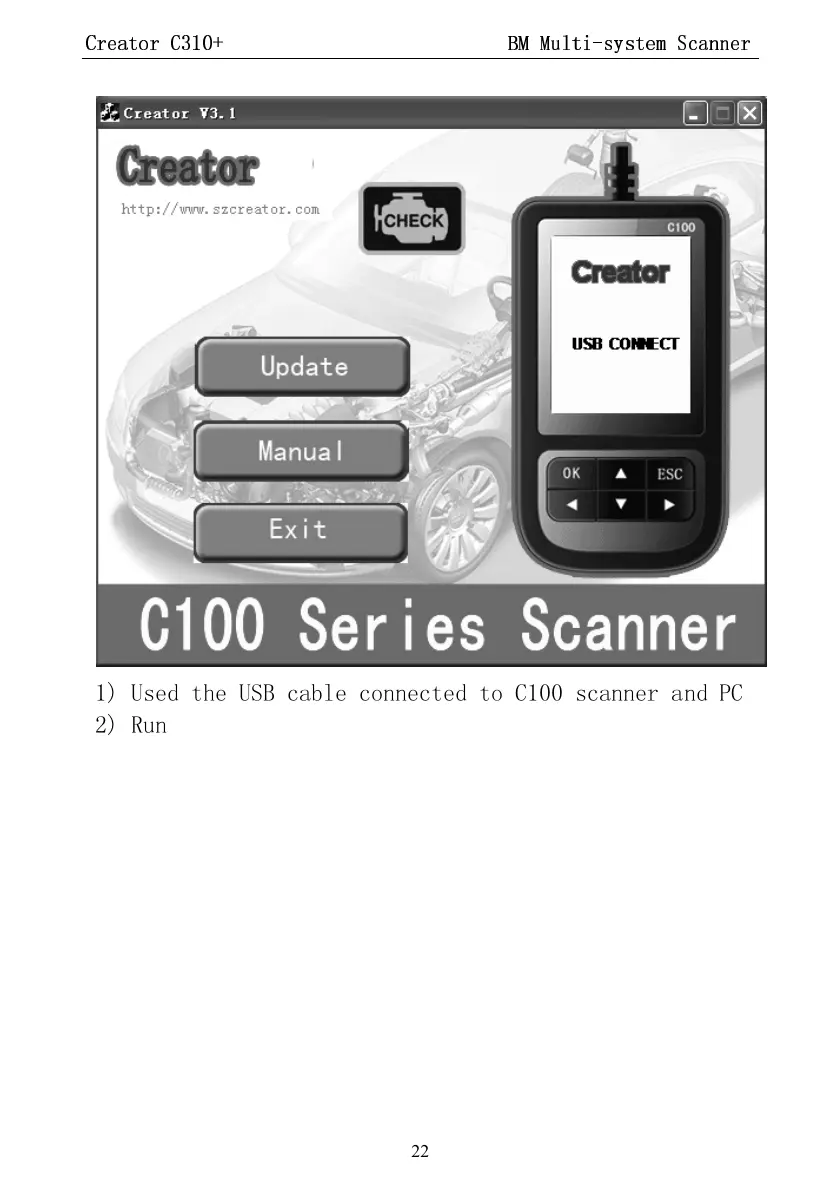 1) Used the USB cable connected to C100 scanner and PC