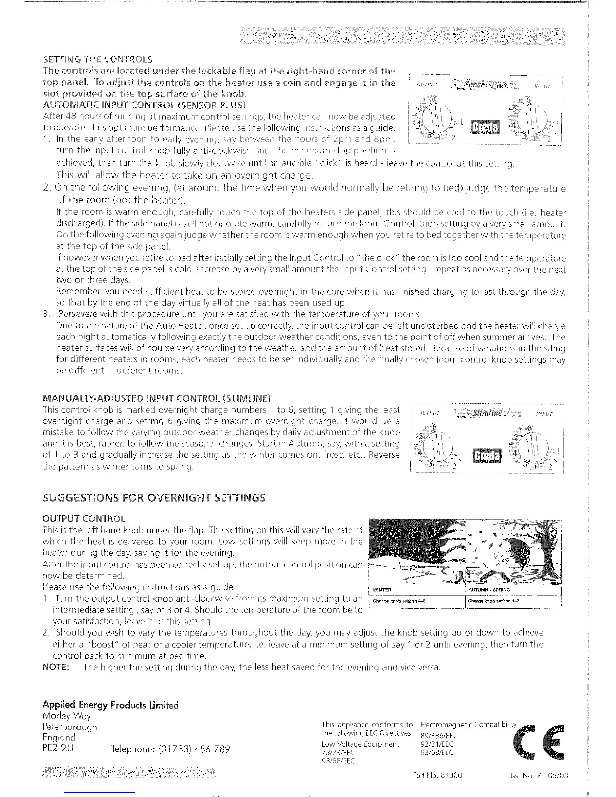 Creda 793415 - Setting the Controls; Setting Automatic Input Control (Sensor Plus); Manually-Adjusted Input Control (Slimline); Overnight Settings and Output Control