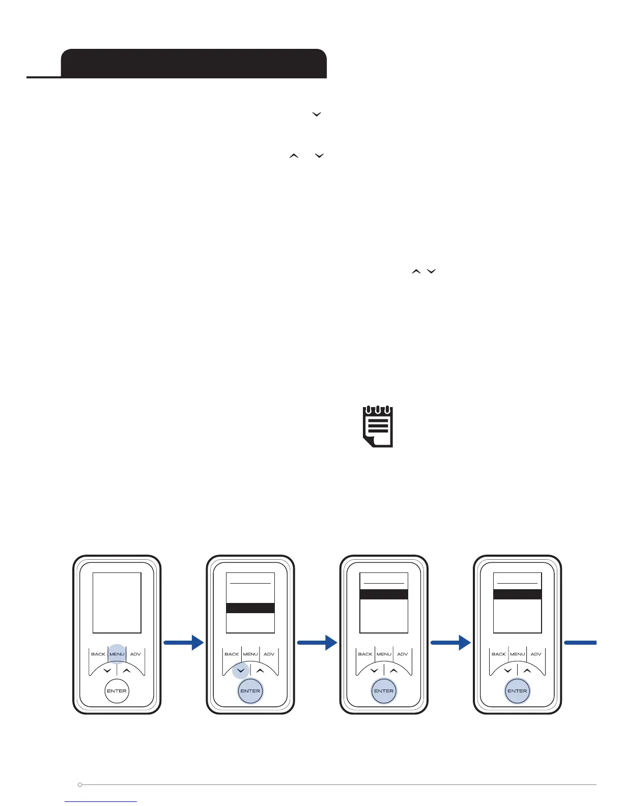 Select the mode required, by pressing the or followed by Enter.