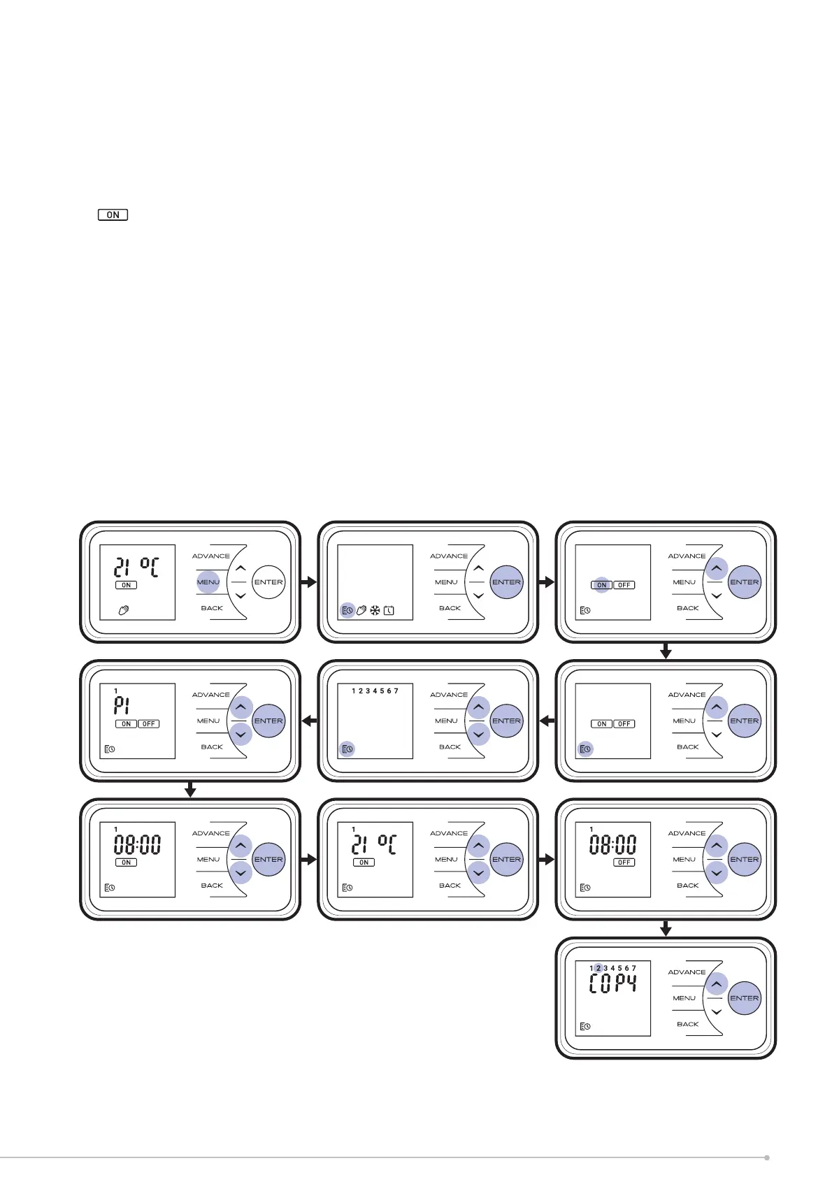 Press Enter to modify Programme P2, follow steps 1-8, Press Up to skip to P3