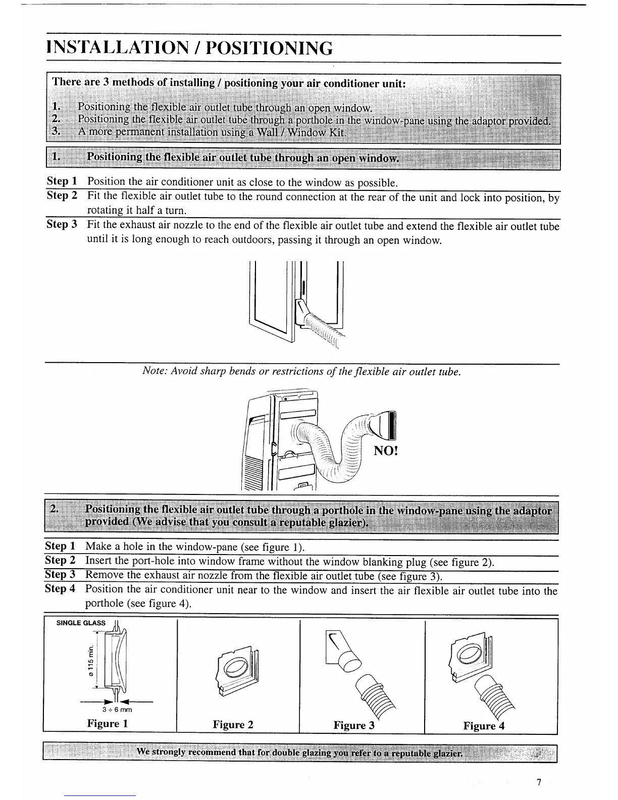 Creda COLDAIR 56030 - Installation and Positioning; Venting Through Open Window; Venting Through Window Porthole