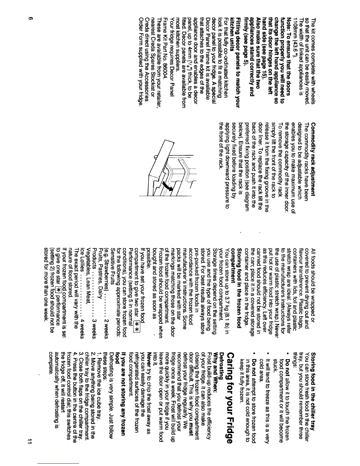 Creda Coldstore 86102 - Commodity rack adjustment; Storing food in the frozen food compartment; Storing food in the chiller tray; Caring for your Fridge