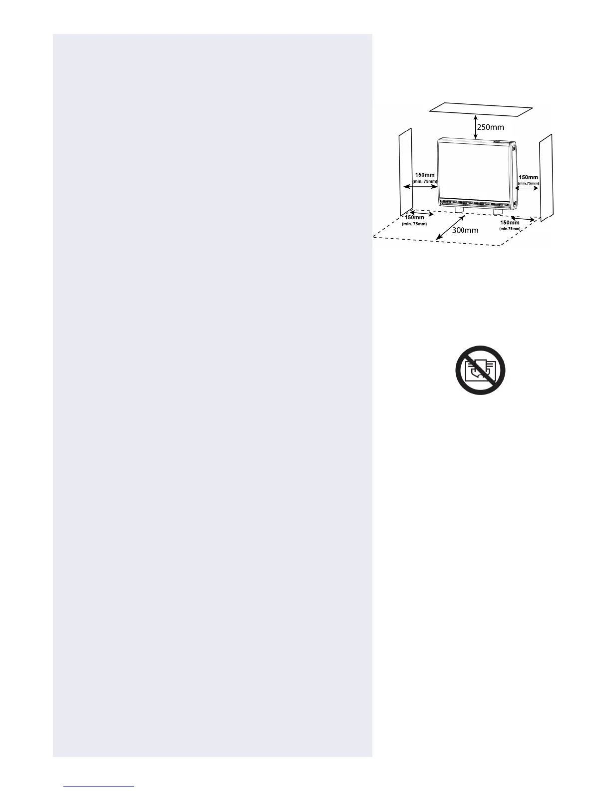 and 75mm (3”) of the ends of the heater. Do not allow any