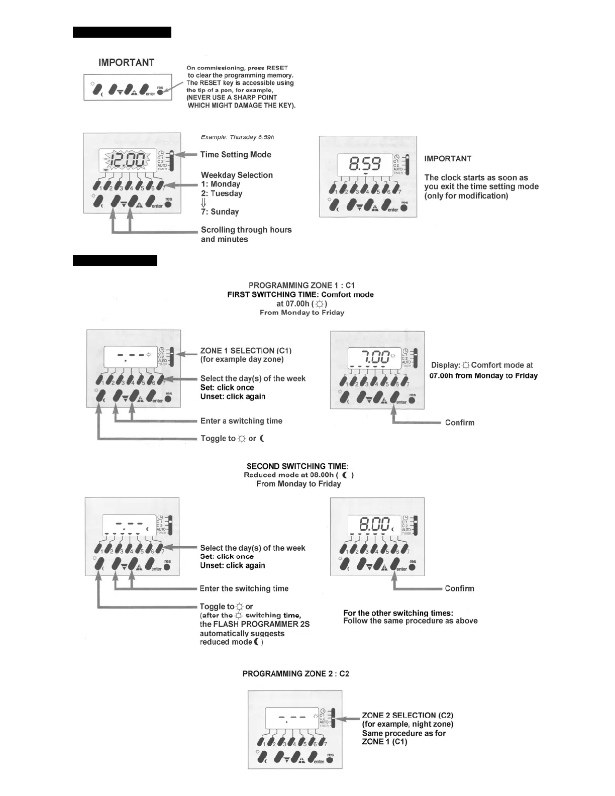 Creda Flash 2S - Setting the Time; Programming; Programming Zone 1 C1; Programming Zone 2 C2