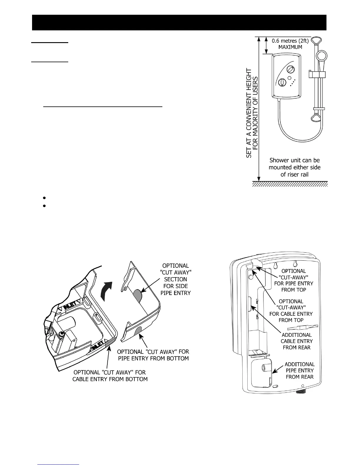 If top or bottom entry is chosen, cut away the walls in the backplate as shown in Diagram 2a/b.