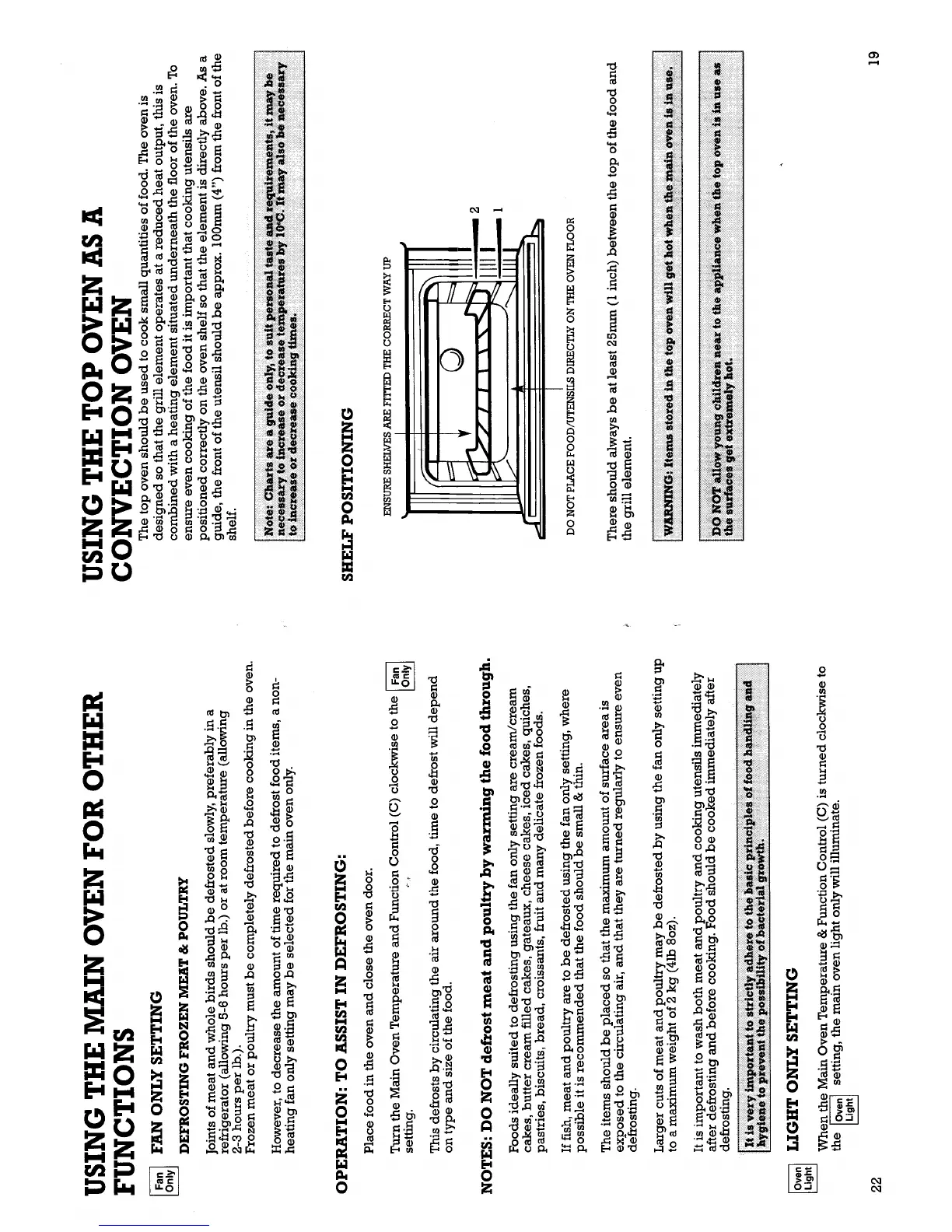 Creda HB48196 - Other Oven Functions; Fan Only Setting for Defrosting; Using the Top Oven as a Convection Oven