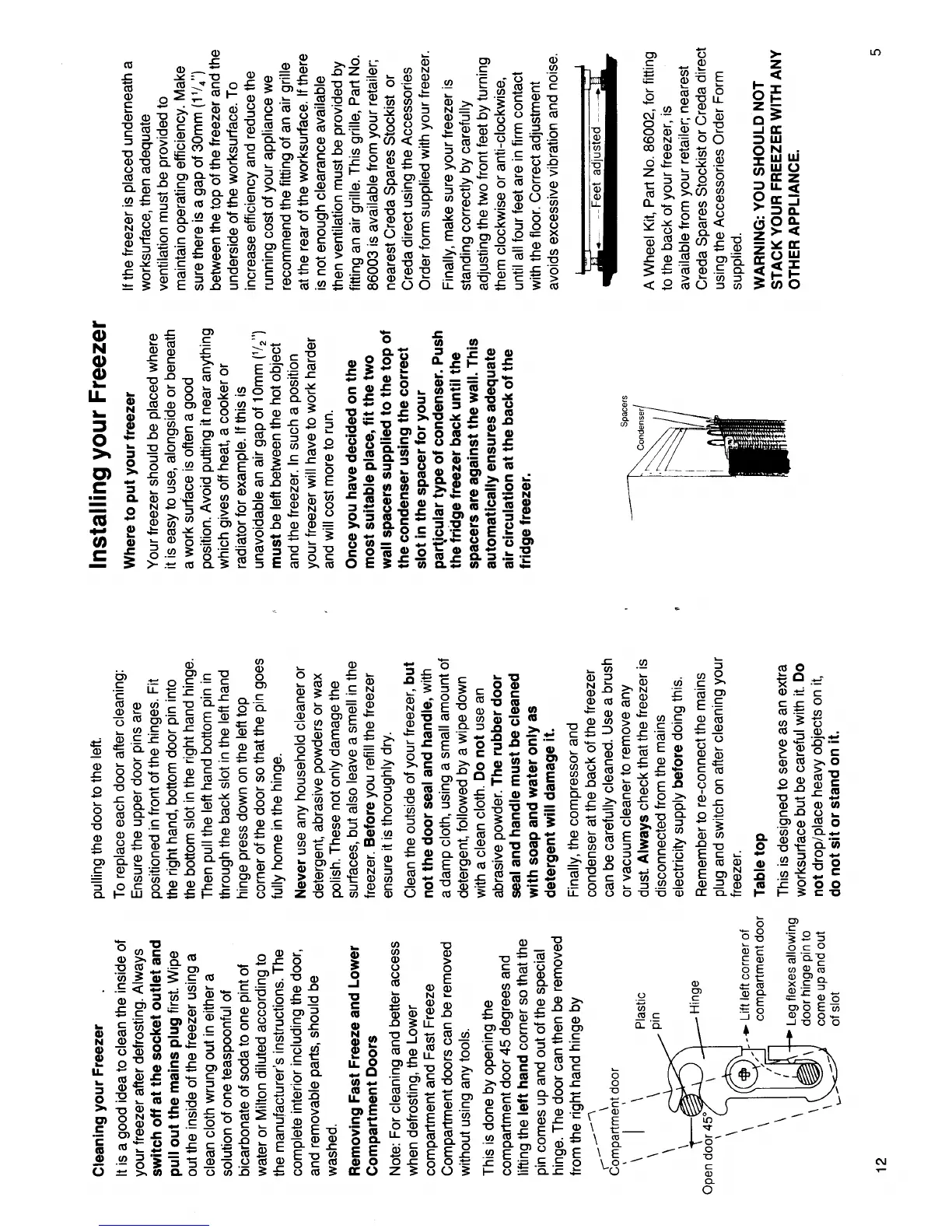Creda HB86301 - Cleaning and Installation; Installing Your Freezer