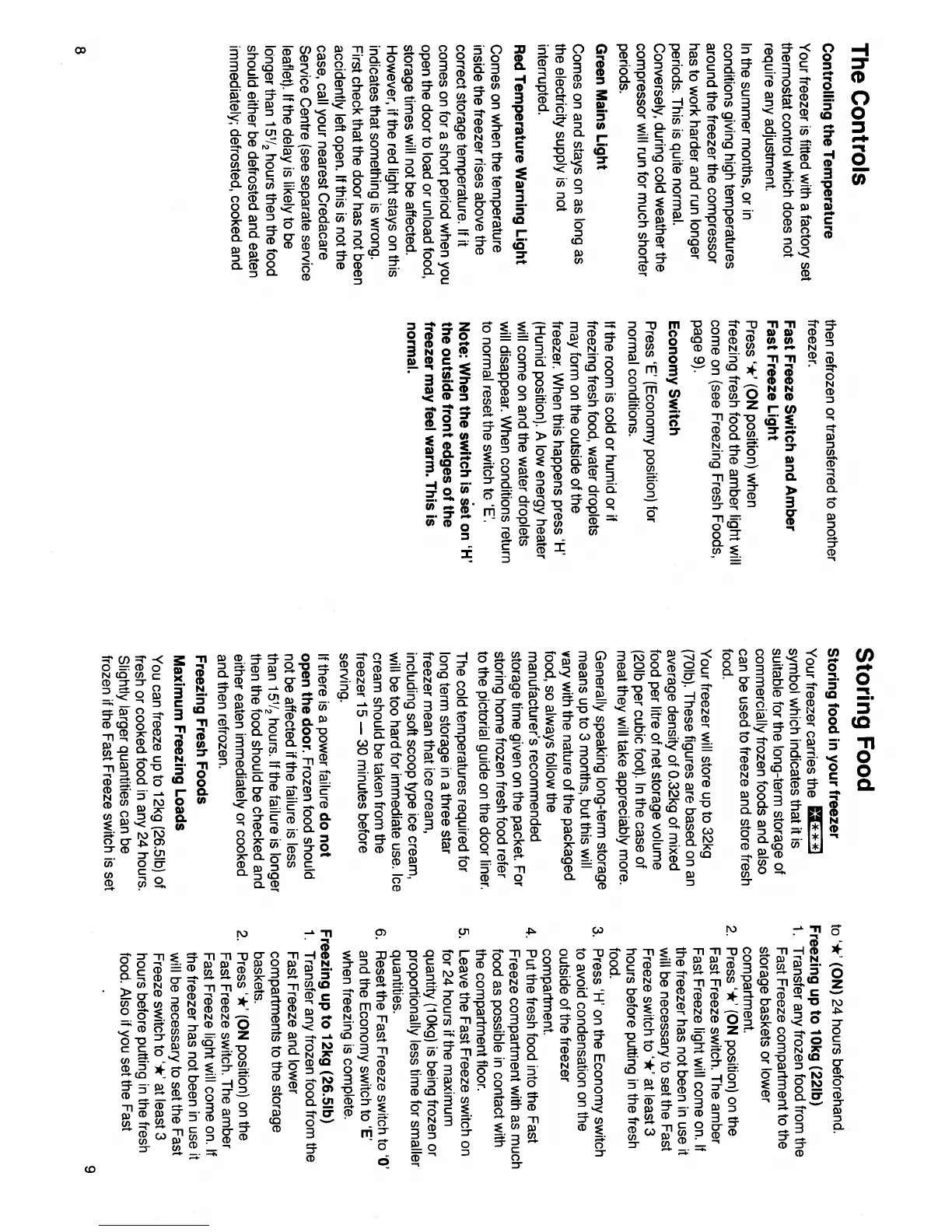 Creda HB86301 - Freezer Controls Explained; Storing and Freezing Food; Storing Food in Your Freezer; Freezing Fresh Foods