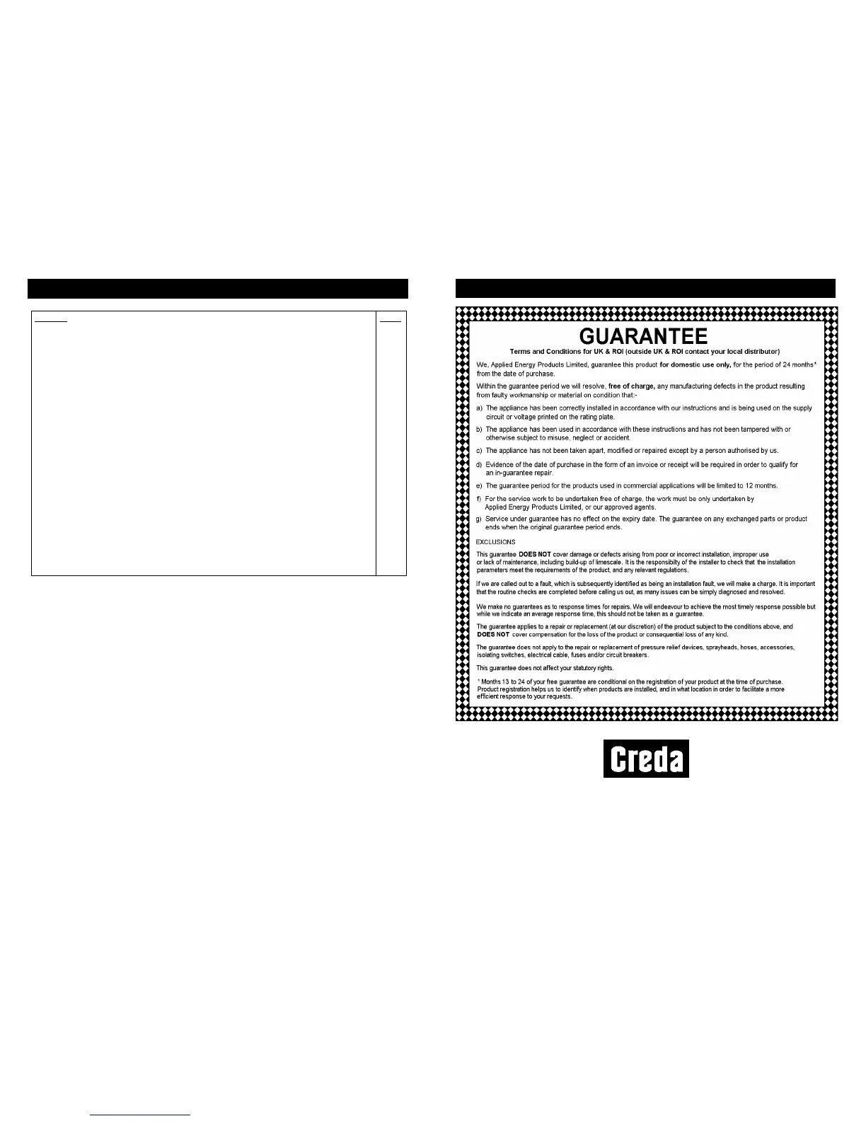Creda After Sales Service . . . . . . . . . . . . . . . . . . . . . . . . . . . . . . . . . . . .