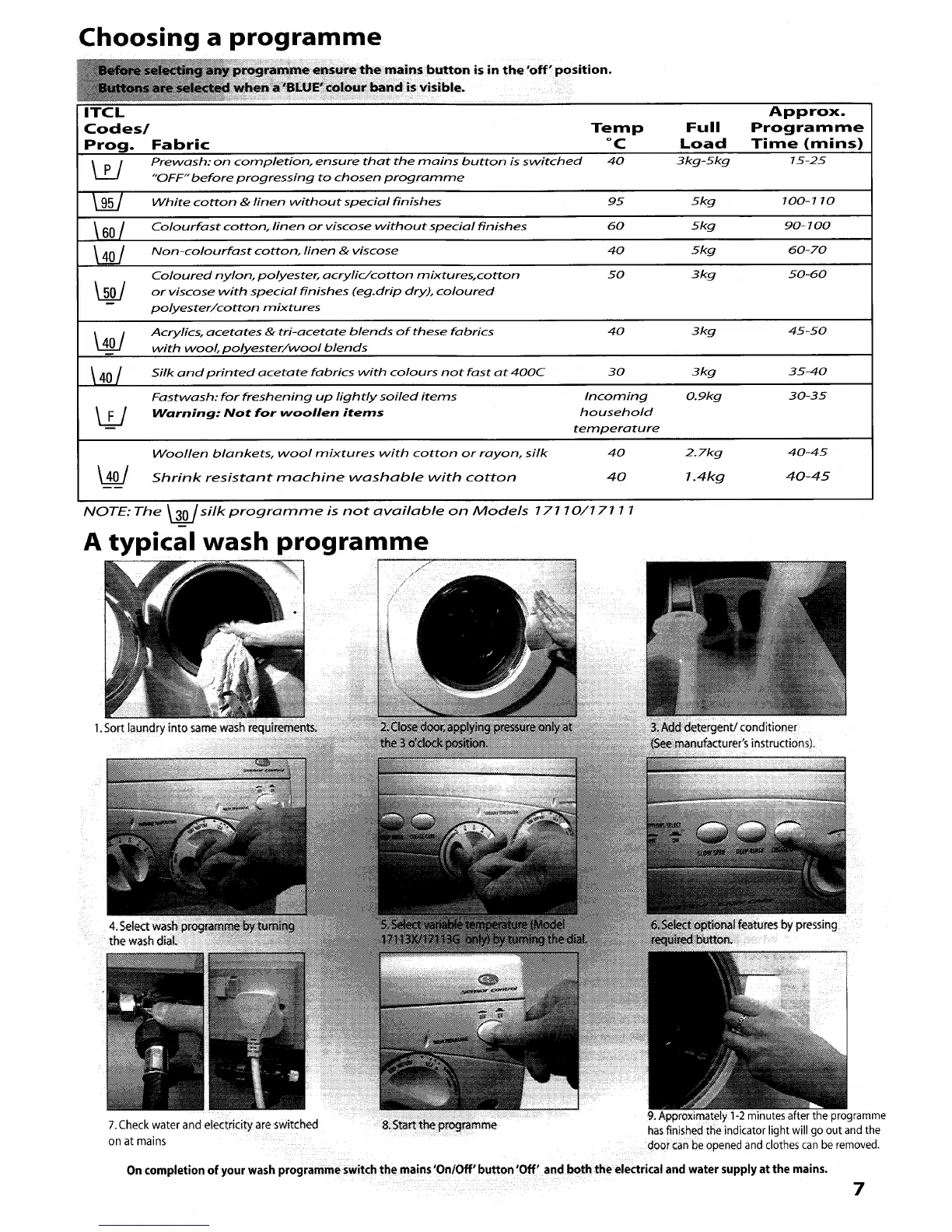Creda Simplicity 1000 - Wash Programme Operation; Choosing a Programme; Typical Wash Programme Steps
