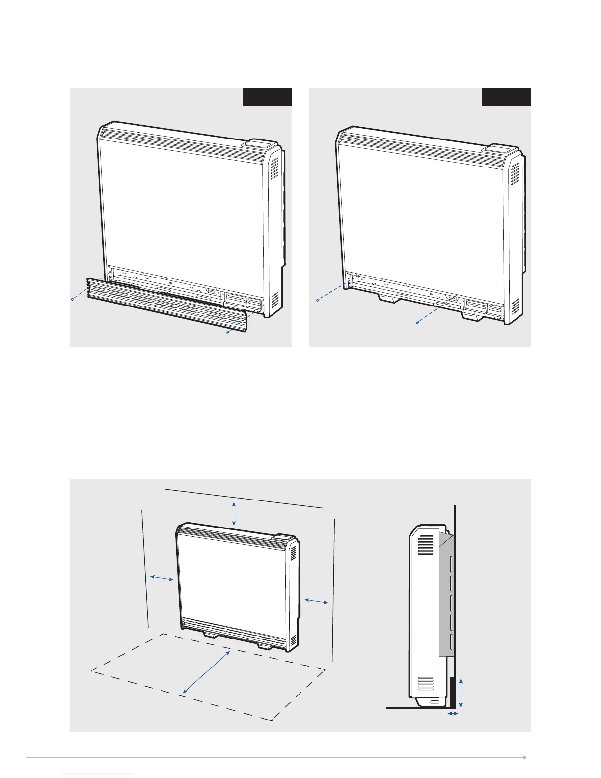 Do not place objects within 300mm of the front of the heater