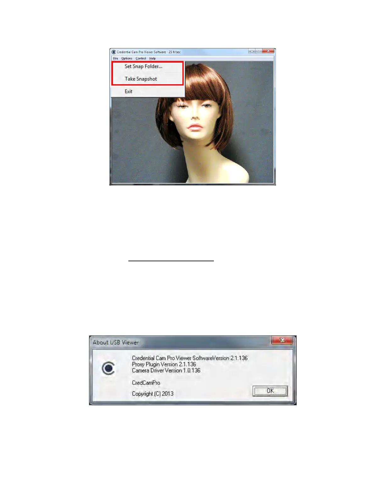 The Image Snap feature is used to acquire and store still images from the video display and is initiated by