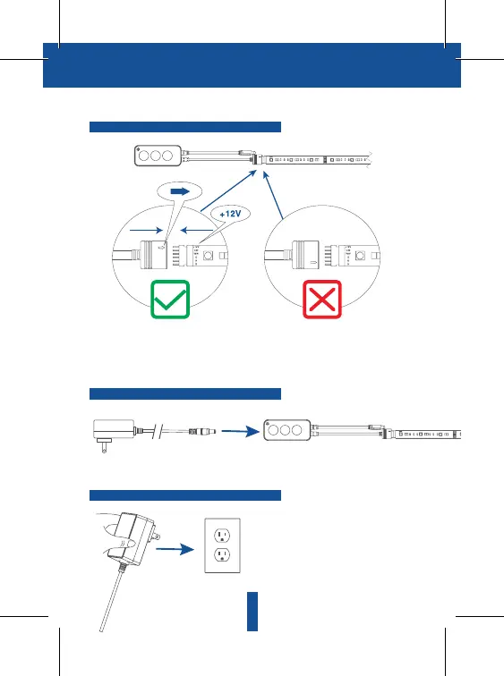 CREE LIGHTING CONNECTED MAX - Power Connection; Connecting Light Strip to Controller; Connecting Power Adapter and Wall Plug