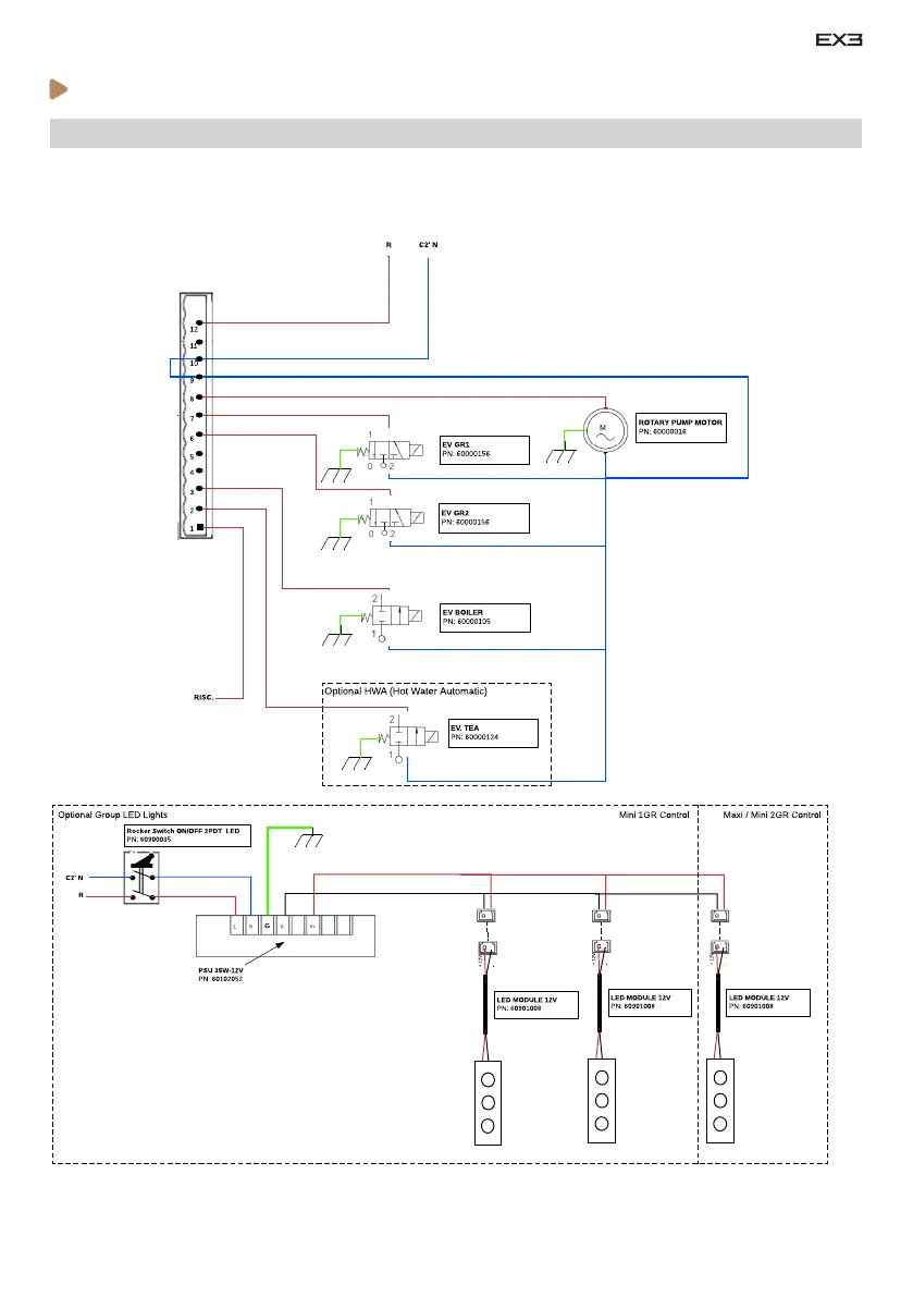 · PCB & LED lights connections - EX3 1B Control Versions