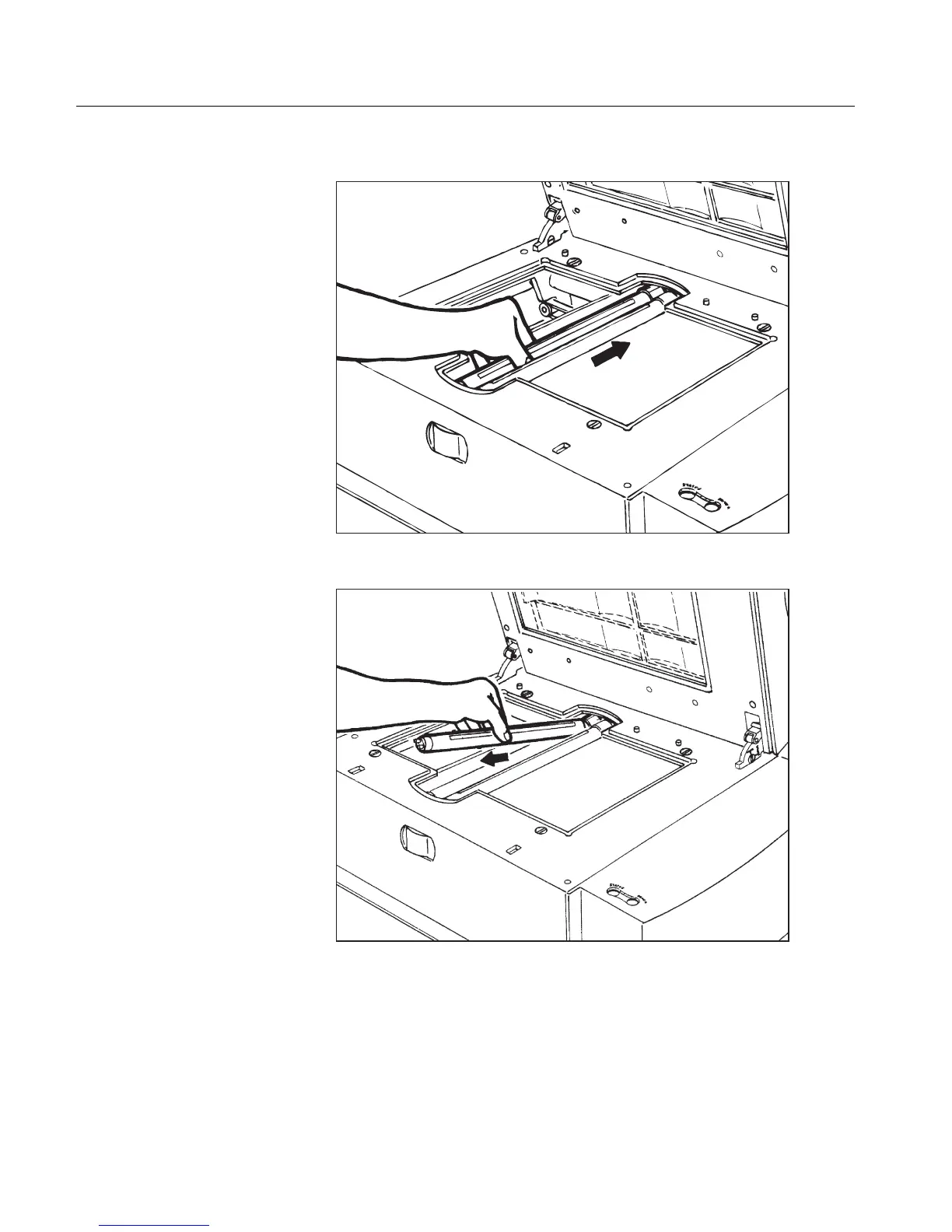 8. Remove the lamp in two steps. First, gently push the lamp inward.