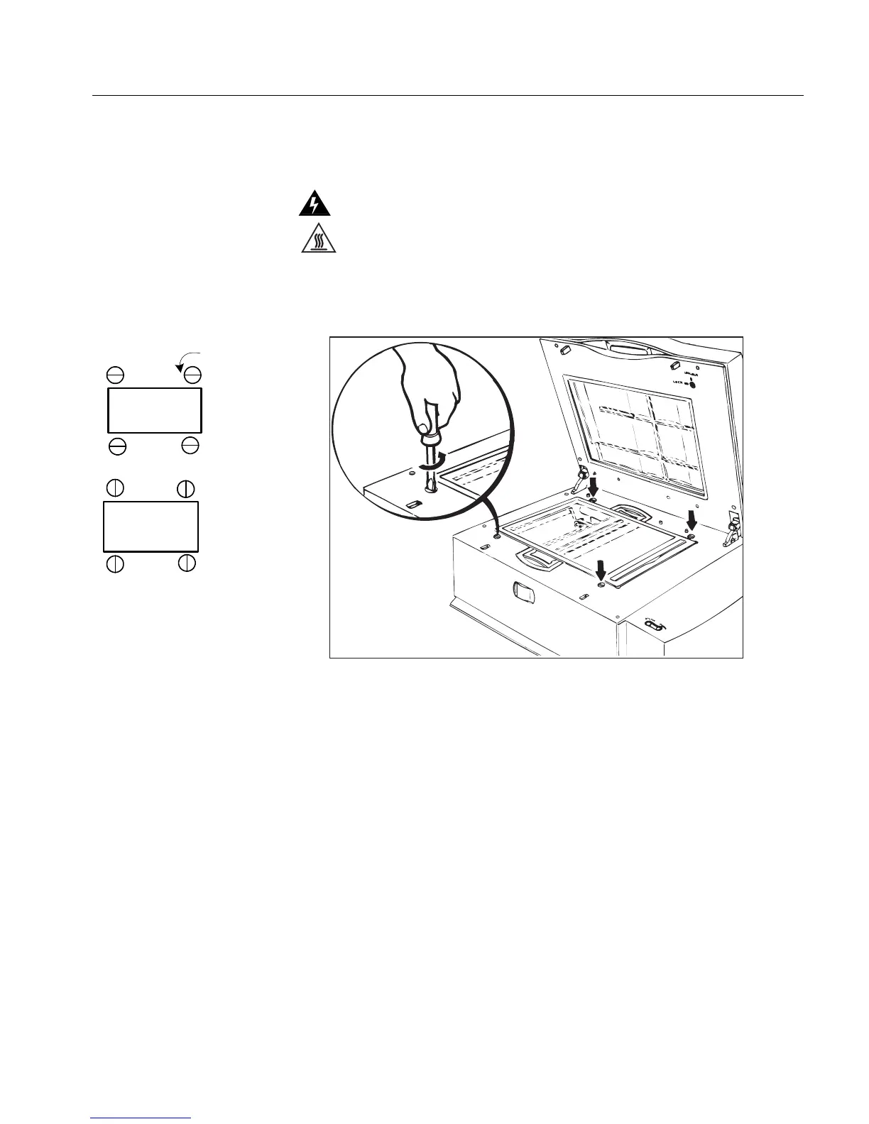 1. Unscrew the four screws that fasten the glass plate to the scanner.