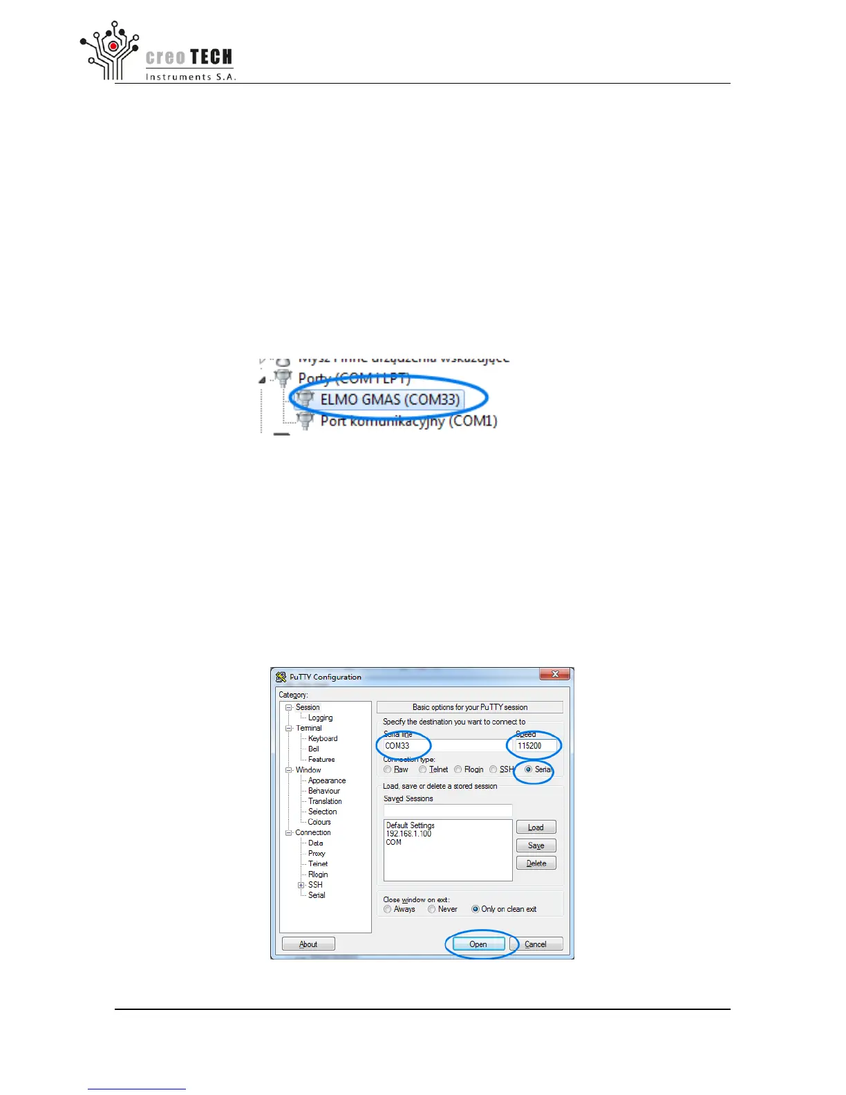 (b) type COM33 port and Speed: 115200